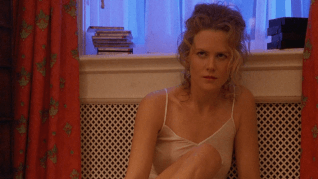 Most commonly associated with confident, heroic, save-the-day roles, Cruise plays the weakest and most emotionally vulnerable character of his career in Eyes Wide Shut. Kubrick presents him as an outsider, unable to penetrate the sexual world of the elite class. Despite being a well-paid doctor, he does not know anyone at Ziegler’s party, nor does he qualify for an invite to the orgy. When Bill arrives in a cab at the orgy instead of a limo, he’s instantly outed as someone who doesn’t belong. And so, feeling thoroughly inadequate both sexually and as a member of New York’s high-end social circle, Bill clings to the little authority he has: his medical license and his money. While he attempts to learn about the orgy and what happened to Nightingale, he comically flashes his doctor’s license like a detective’s badge to several thoroughly unimpressed New Yorkers: the costume shop owner, Domino’s roommate, a server in a diner, and the hotel clerk. If that doesn’t work, he dishes out cash to buy their favor, treating everyone as though they have a price. One can guess he imagines himself as an Important Man, yet Alice’s confession and his ejection from the orgy have bruised his ego. In an amusingly cruel streak, Kubrick casts Cruise against type. On the surface, he has all the hallmarks of a successful, good-looking family man. Yet, even as he tries to restore his ego through a meaningless sexual encounter, whether by circumstance or fear, he cannot manage to go through with it, nor can he earn anyone’s respect with his doctor’s badge or wallet full of cash.