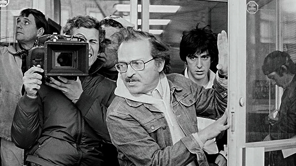 Lumet was also a believer in the philosophy that form should follow function, or that a film’s theme should inform its style. This is never more evident than in Dog Day Afternoon, where Lumet sought to underscore the reality of what took place on that hot day in 1972 with what he described as “close to documentary filmmaking as one can get in a scripted movie.” He wanted to “make sure that you never felt it was a movie, that you felt in essence you were watching a newsreel.” So Lumet and cinematographer Victor J. Kemper went out into the streets of New York, guerilla-style, and captured shots of everyday life in sweltering temperatures. They appear in the film’s first opening montage: a dog rummaging through garbage, people sitting around outside and talking, a public pool, a construction site, heavy traffic, a busy beach, homeless people, businessmen, and various other scenes. Then Sonny (Al Pacino), Sal (John Cazale), and Stevie (Gary Springer) appear in a car in front of a bank, looking no different than the everyday people of New York. They step out, one by one, and enter the bank near closing time. To further the natural look, Lumet insisted his cast use their personal clothes and do their own makeup for the production, removing any Hollywood gloss. Lumet and Kemper also used no artificial light sources, relying on the bank’s fluorescent bulbs and emergency lights for the interiors. At night, the light source came from the police spotlights and street lamps outside.