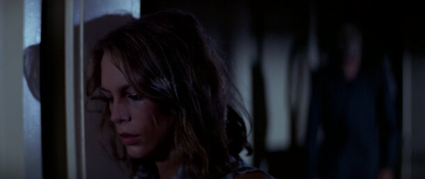 Since Michael Myers cannot be pinpointed, his indefinability has led to many explanations, most of them well-argued if subject to holes in their evidence. Most commonly, Halloween has been accused of enforcing a moral justice against women who indulge in their sexual impulses. Michael seems to punish women, namely his sister Judith (Sandy Johnson), Annie, and Lynda, for their sexuality and nudity. His female victims each appear nude and, having been spied on by Michael, meet their demise shortly after exposing themselves. Michael kills most of his victims in bedrooms, or commits his murders as his victims plan for, or have just completed, a sexual encounter. Sexual liberty seems to enrage Michael, a motivation that stems back to his childhood killing of his sister, whose gravestone he situates on a bed where he has arranged Annie’s lifeless corpse in an odd commemoration. Whatever the reasons, Michael is driven by an aversion to sexuality and nudity, particularly in women. This distorted, albeit tempting argument ignores that Michael also kills two men and two dogs in the movie. It also begs the question of why, if Michael is obsessed with punishing sexually active women, does he focus so intently on Laurie, who is nothing like her friends or Michael’s sister? The simple answer could be that Laurie is the first teen Michael sees upon his return to his childhood home in Haddonfield, where, early in the day, Laurie visits to drop off a key for her father, a realtor. She’s roughly Michael’s sister’s age during the murder, which could have sparked an association. Furthermore, Michael’s motivation could be analogous to Jason Voorhees from the Friday the 13th franchise, who gets revenge on camp counselors that were having sex while he was drowning—in both cases, a child is neglected in favor of adolescent sex. Then again, Michael survived despite his sister’s intercourse.