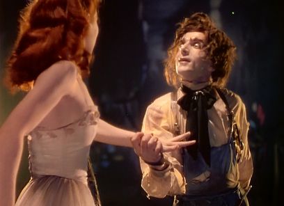 The ballet moves from a typical stage setting to Heckroth’s surrealist painted backdrops, into a world where a church of dramatically elongated shapes towers overhead. The ballet’s initial state takes place in what might outwardly be perceived as reality, but the cinematic world, both in the story and where the ballet advances, is not reality. Vicky’s character moves because the red shoes compel her to and because the twisted shoemaker (Massine) controls them like a puppeteer. Notice how the red shoes tie themselves onto Vicky’s feet, or how all at once Vicky sees the ballet’s shoemaker character as both Lermontov and Julian, both her puppeteers in life. Through the sequence, which comes from Vicky’s perspective, the film breaks down reality as the false front, and then exposes the emotional truth underneath as the fantasy world of Vicky’s creation. The film is no longer a peek into The Ballet Lermontov’s backstage workings; the sequence is as much a voyage into Vicky’s mind as it is a rendering of the ballet. Her dancing travels beyond space and time to engage the imagination, flowing together with a flawless unity of music and image. This colorful, limitless universe is where Vicky exists when she dances.