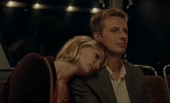 Some elements of what’s happened so far emerge when Chris explains her story ideas to Tony, who listens attentively, though he occasionally answers his phone or seems distant. Then Hansen-Løve does something tricky, diverting from the story of Chris and Tony to focus on Chris’ developing screenplay. The ensuing film-within-a-film, which Chris shares with Tony, features Chris’ voice as narration. Her story takes place on Fårö and involves a young woman, Amy (Mia Wasikowska), who has been in an off-and-on relationship with her first love, Joseph (Anders Danielsen Lie). They reunite briefly during a three-day stay on the island for a friend’s wedding. Watched through Chris’ mental projection, the film unfolds like the one we’ve been watching so far, with almost identical aesthetic choices. Chris shoots Amy and Joseph’s story in her mind with the same visual sense that Hansen-Løve has presented Chris and Tony’s story. All the while, it’s apparent that Amy is an extension of Chris; they even share an outfit. Is Joseph somehow representative of Tony, and if so, what does Chris’ film have to say about her relationship? Do the connections between Chris’ life and art even matter when the result proves singular enough to draw our attention away from the storyteller?