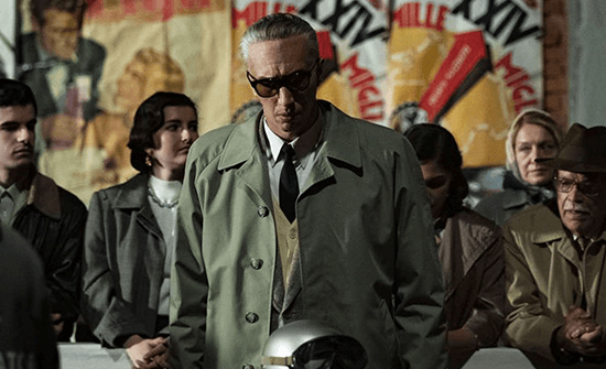 Ferrari movie stillWritten before he died in 2009, Troy Kennedy Martin’s screenplay draws from Brock Yates’ 1991 book, Enzo Ferrari: The Man and the Machine, and narrows the story to a few months in 1957 that distill Ferrari’s identity through a personal and professional collision. The screen story builds toward the Mille Miglia, the once-famous race that began in Rome and lasted “1,000 miles” through cities, valleys, and the countryside. Winning the race becomes essential to restoring Enzo’s professional glory, which is threatened by his company’s shaky solvency and rivals from Maserati. At home, Enzo clashes with Laura (Penélope Cruz), his wife of more than twenty years, who helped him start the company and mothered the child they lost to muscular dystrophy. In a location he went to considerable lengths to keep secret from Laura, Enzo maintains a relationship with Lina (Shailene Woodley), whom he met during the war. Their 12-year-old son, Piero (Giuseppe Festinese), could become the heir to Ferrari—a successor and conveying power through lineage remains a kingly concern for the protagonist.