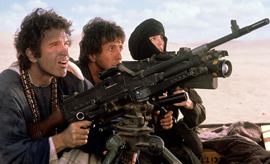 As production costs on Ishtar skyrocketed, the executive leadership at Columbia underwent a changing of the guard. David Puttnam took over for studio chief Guy McElwaine and, as is often the case with transitions at the top in Hollywood, the former administration’s projects became unwanted stepchildren—symbols of a failed management that would often be sabotaged to further articulate that failure. At first, the cost-conscious Puttnam wanted to pull May from the film and replace her. But Beatty, who produced the film, refused to allow that. It didn’t help that, as a producer, Puttnam had made Chariots of Fire, which had competed heavily in the Oscar race against Reds—Puttnam’s film took home four statues, including the Best Picture win, while Beatty’s film took home three. As personalities clashed and power struggles continued in the editing room, May stepped away from the editing process, while both Beatty and Hoffman vied for control over the footage with their own editors. Puttnam resolved to wash his hands of the production; he allowed the chaos to continue, if only to demonstrate that the production was beyond repair. If Puttnam intervened, he could be blamed if Ishtar tanked, but he knew that if he allowed Beatty and May to continue without his involvement, he could absolve himself of responsibility.