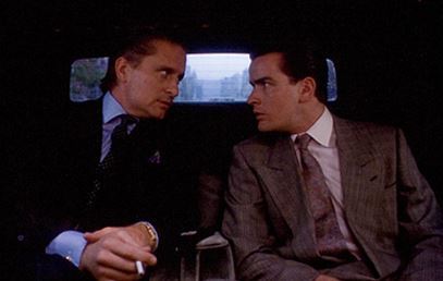 Charlie Sheen plays Bud Fox, a naïve but enthusiastic young broker who, through persistence, finagles his way into the office of Gordon Gekko, the power broker famed for moves like selling NASA stock short mere moments after the Challenger crash. Fox tries to sell Gekko on his “dog” stocks, but he sees right through them, so Fox sells Gekko on an insider tip that the airline where his father (Martin Sheen) is a mechanic will be expanding, given a recent not-yet-announced settlement payout. Information is the game, and Fox quickly becomes an info lackey for Gekko, who plays Fox with a Machiavellian spin. Meanwhile, Fox’s bank account grows. He begins dating shallow socialite interior designer Darien (Daryl Hannah). Finally, he lays down plans to help his father’s airline in a new buyout championed by Gekko. Of course, Gekko betrays Fox and plans to liquidate the airline. When Fox discovers this, he plots to manipulate the airline’s stock and drop the price to force Gekko to sell; he then convinces another moralist power broker (Terrence Stamp) to buy the airline, thus saving his father’s job.