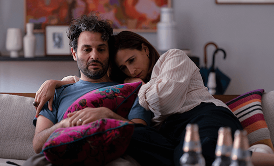 In You Hurt My Feelings, Louis-Dreyfus plays Beth, a writing instructor at the New School. Beth has a well-received memoir to her credit, though her mother (Jeannie Berlin, great in a scene where she confuses TMZ for TCM) thinks it should have done better. This leaves Beth wishing she had more drama to write about than an account of her late father’s verbal abuse. Her latest project, a novel, has not been met with enthusiasm by her agent, despite Beth writing umpteen drafts, so she is considering a different agent. Fortunately, she has a supportive relationship with her husband, Don (Tobias Menzies), a psychiatrist, who claims to love her recent draft. Don has career uncertainties, too. A couple (David Cross and Amber Tamblyn) he guides through marriage counseling complains of their relationship not improving. Another dour patient (Zach Cherry) ends every session with a disparaging remark (“fucking pointless”) about Don’s abilities as a shrink, only to deny his disillusion when Don asks about it. This has prompted Don to reflect on his age, abilities as a therapist, and whether he’s starting to show signs of wearing down. His eyes look tired, so he questions whether cosmetic surgery will help him feel better about getting older.